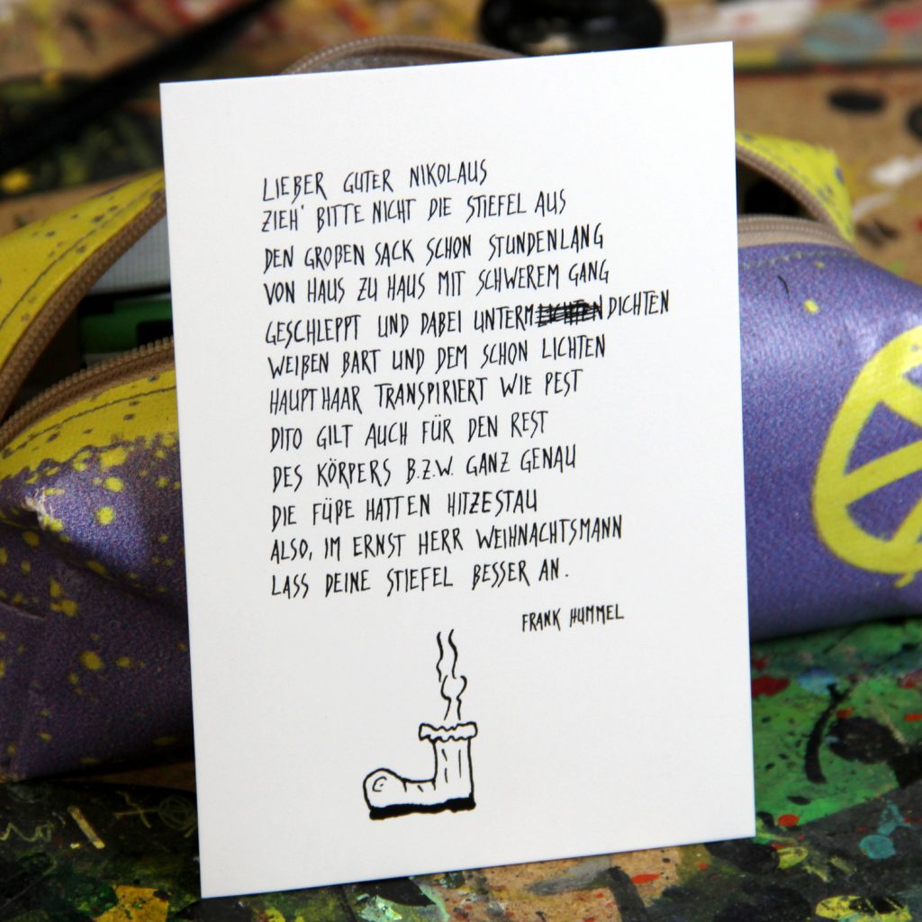 Schreib mit einfach eine E-Mail an „post(at)frank-hummel.de“ mit „Stinker“ oder „Leere“ und Deiner Adresse und ich schicke Dir die entsprechende Karte inkl. Weihnachtsgruß!
